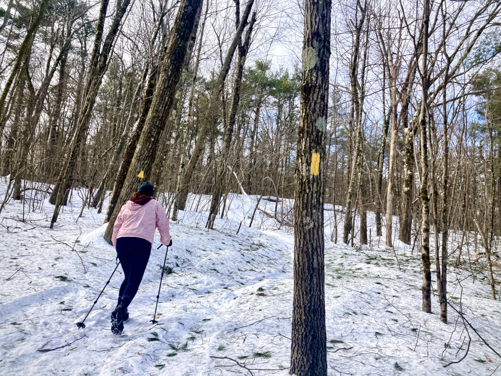 In our travels we touched upon several trails. I was reminded of my last visit here a few years ago as a group section hiking the Midstate Trail in fall. The trail runs north/south across Massachusetts, and over the summit of Wachusett. Now that I’ve hiked it in both late summer/fall and winter, but I definitely prefer it with a little snow.