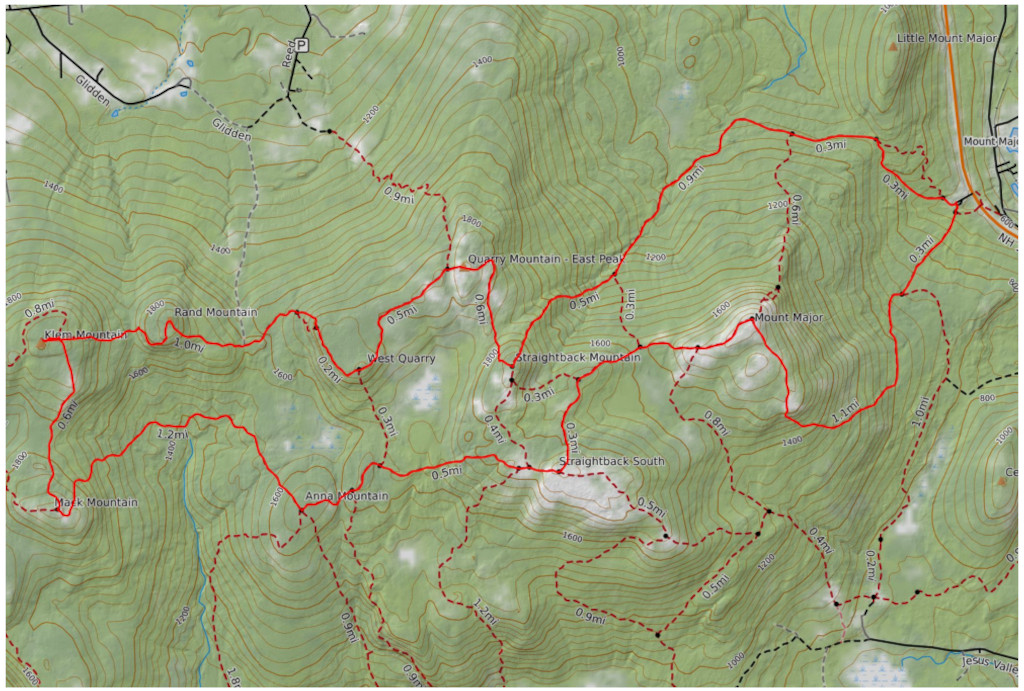 My time in the mountains was limited. I had a few weekend dates available and formulated an ambitious plan. I’d hike them in two separate weekends approaching from opposite directions. One loop would be hiked for nine peaks starting from Mount Major. The next would be a long out and back from Gunstock, capturing Mount Rowe first and Piper last. After bagging all the peaks, the list would go for submission to the Belknap County Sportsmen’s Association