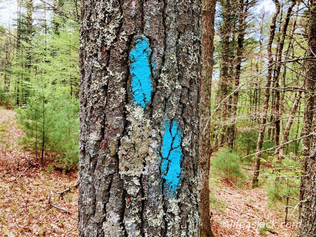 A well marked trail (with colored blazes) keeps you on the right track. When finding your way, keep your chin up. Blazes are usually painted at eye level, and are perhaps between 100-200 feet apart on well marked paths.