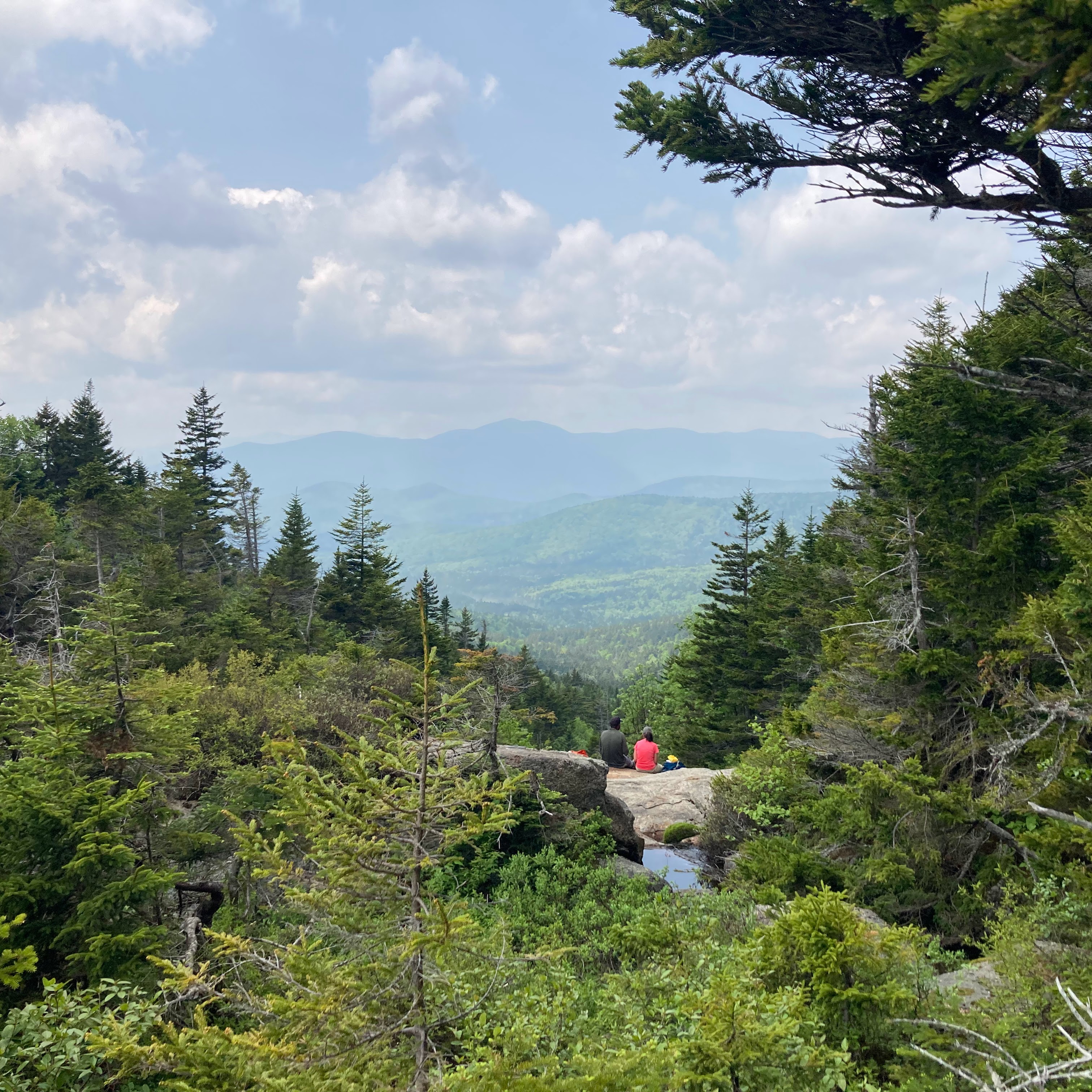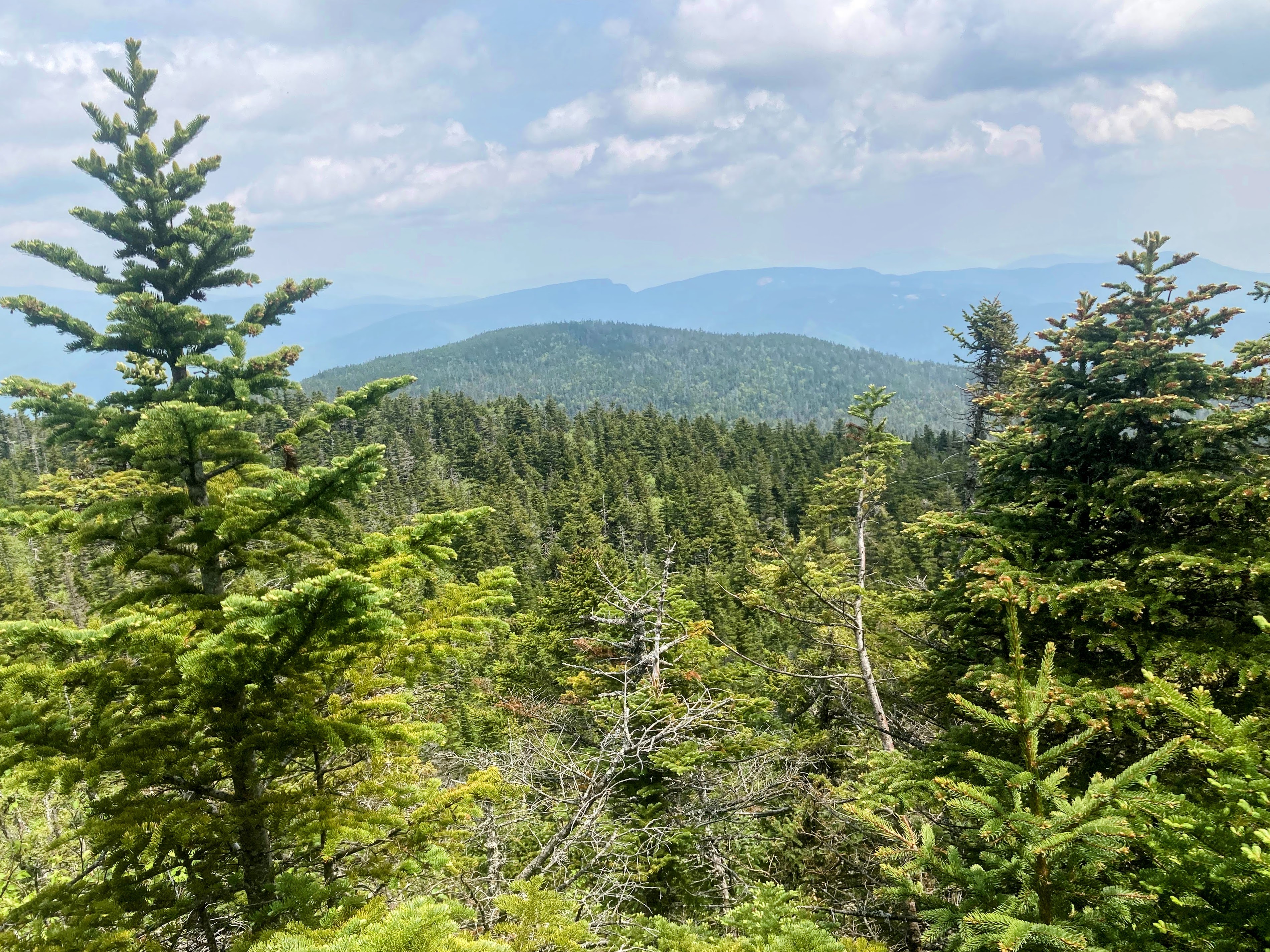 The trail began to flatten out. I could see a bit farther now, perhaps 15 feet in front of me. The trees and brush were no longer as dense as moments ago. In front of me was a small clearing. A bit of open ledge. I could see the sky.