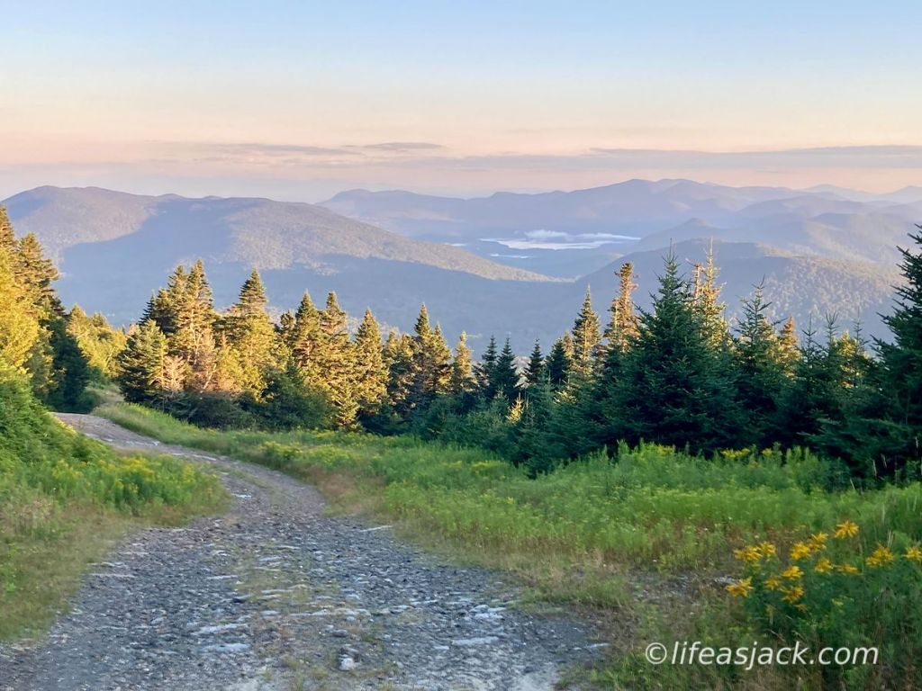 I started the hike from the Pico trailhead on Route 4. Climbing towards the first mountain on the trail,I passed the Churchill Scott shelter. It looked quite dark and wet from the previous weather. I continued on my way to Pico Peak. The summit was off a short spur trail from the Long Trail, but I wanted to bag it for my 100 highest list. Gaining elevation, the trail became dry and I was making good time. Reaching the hut before dark, I unrolled my quilt and inflated a sleeping pad.