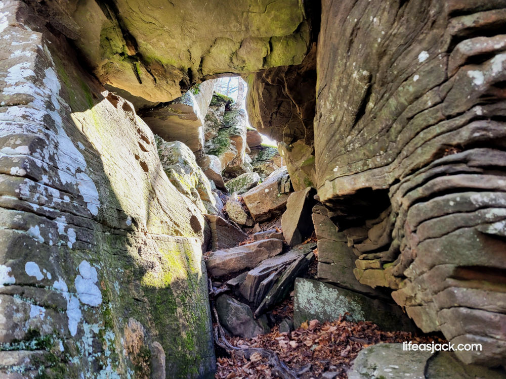 Despite my cautious hiking efforts, I still made good progress. The path was quite enjoyable, winding through the boulders, scrambles and in one case underneath them!