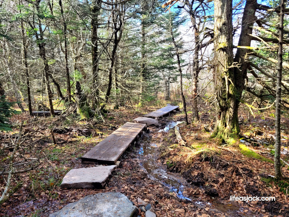 After navigating my way to higher and flatter ground, stones and bog bridges paved the route to my destination.