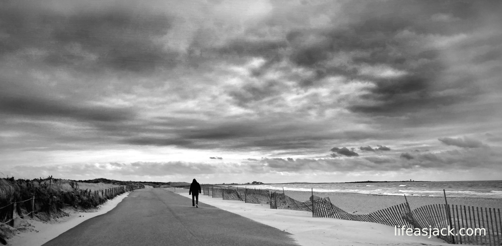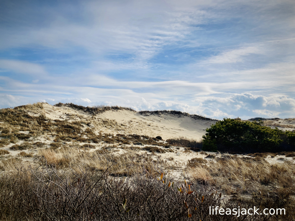 Horseneck Beach has a lovely paved walking path between the dunes and the ocean. I set out on foot, alone with my thoughts.