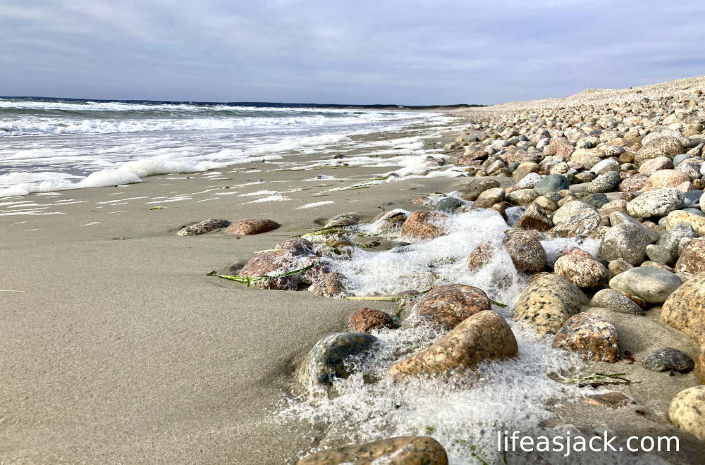 The sea was angry, green waves crashing against the shore. My walk behind the taller dunes protected me from the buffeting wind. I would have to go down to the ocean. I wanted my return trip to be close to the water’s edge.