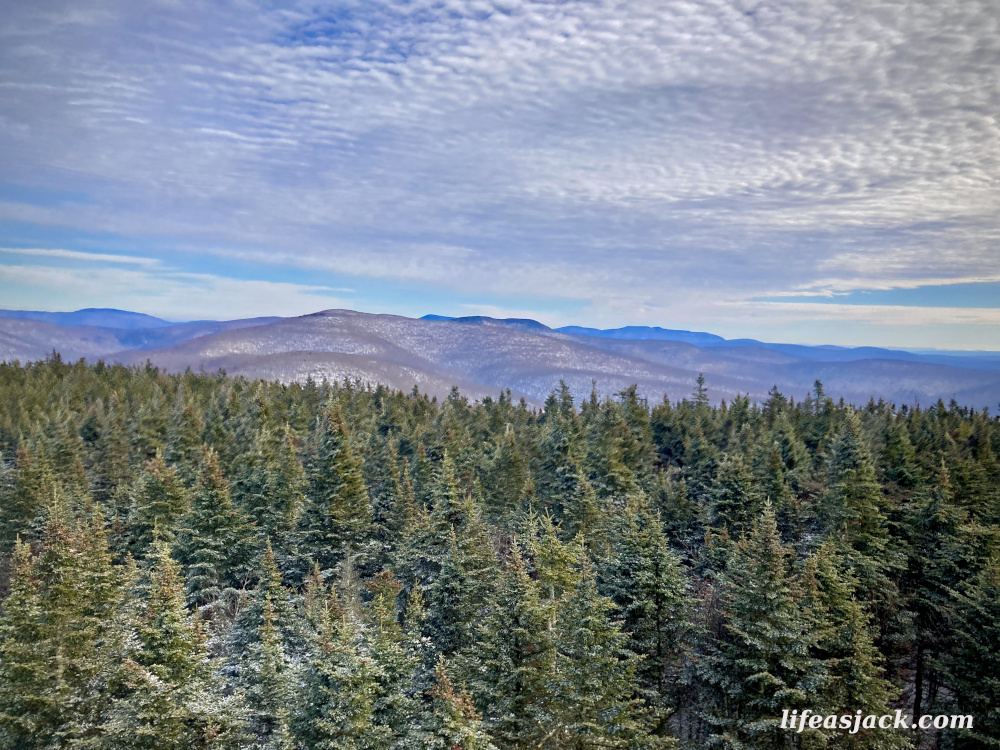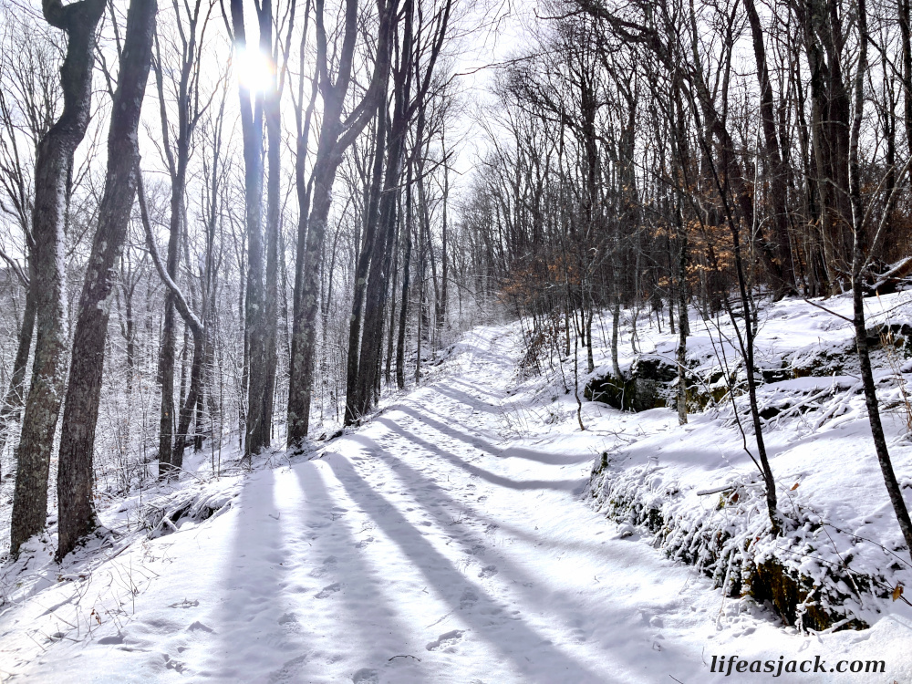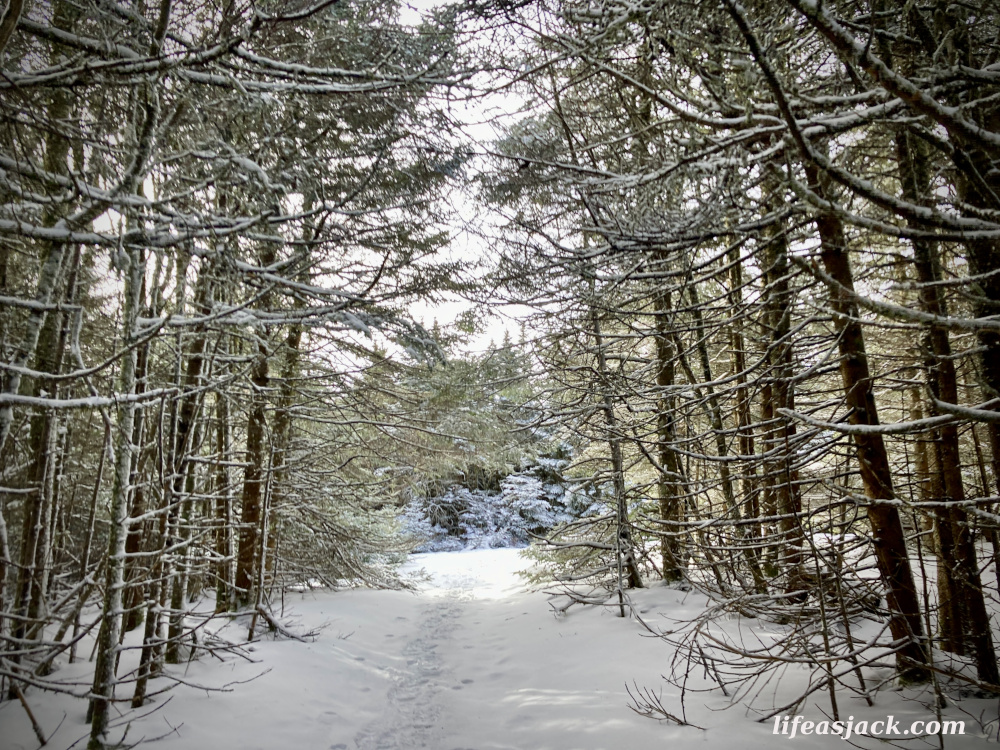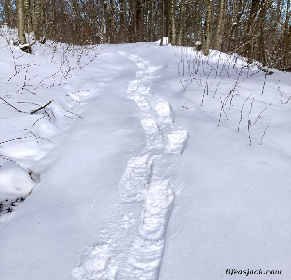 The trail is an old access road to the fire tower that sits at the summit. The grade was gradual and easy to hike. I started slow. This would be just seven miles round trip, but the pack was heavier than usual with the snowshoes.