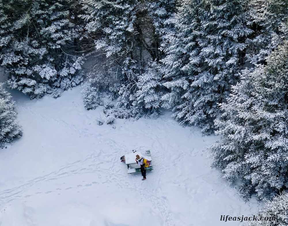 Below, my fellow snowshoe hiker was gearing up and moving on. I decided to do the same.