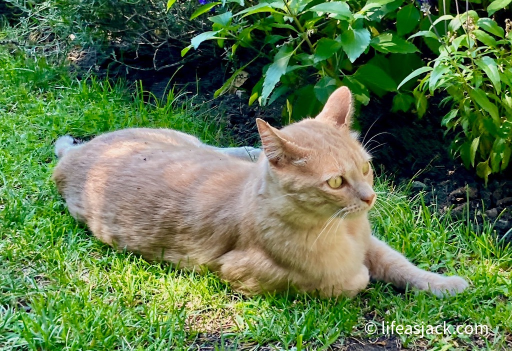 I call to him but he ignores me. I realize this cat is French! I call to “le chat” again.