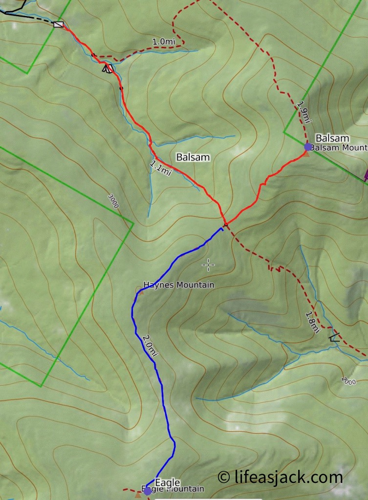 - What was the condition of the trail? The peak was not as popular as Balsam. If the trail was poor, it would take longer and require more energy.