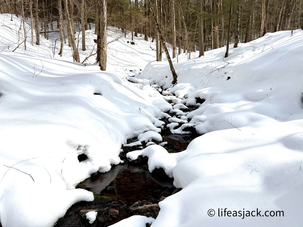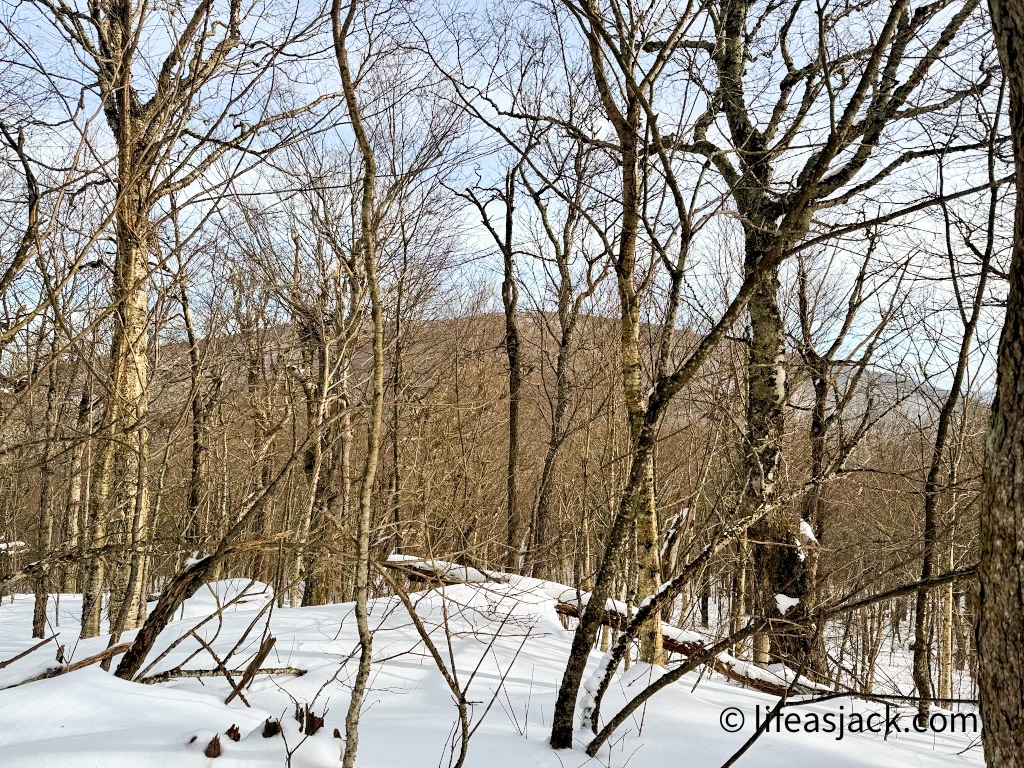 Descending Haynes Mountain, my right knee began to give way. The pressure on the joint from each downhill step was beginning to take its toll. Nine miles in snowshoes was the longest distance I had faced in a long time. Reaching the junction at the top of the ridge, I had less than two miles to go to reach the trailhead and the car. It would be a long two miles, and all downhill.