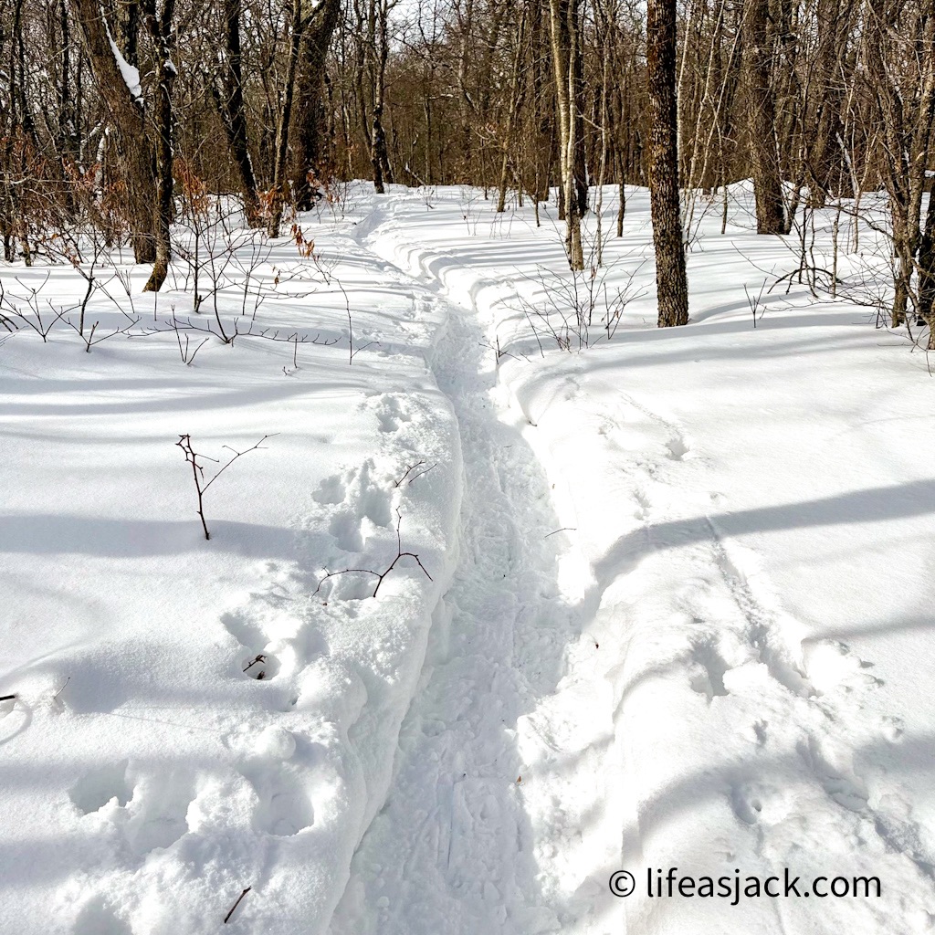 Snowshoes and heavy boots adds quite a bit of weight to each step. On an “unbroken” trail, I would definitely run out of steam before reaching the goal.