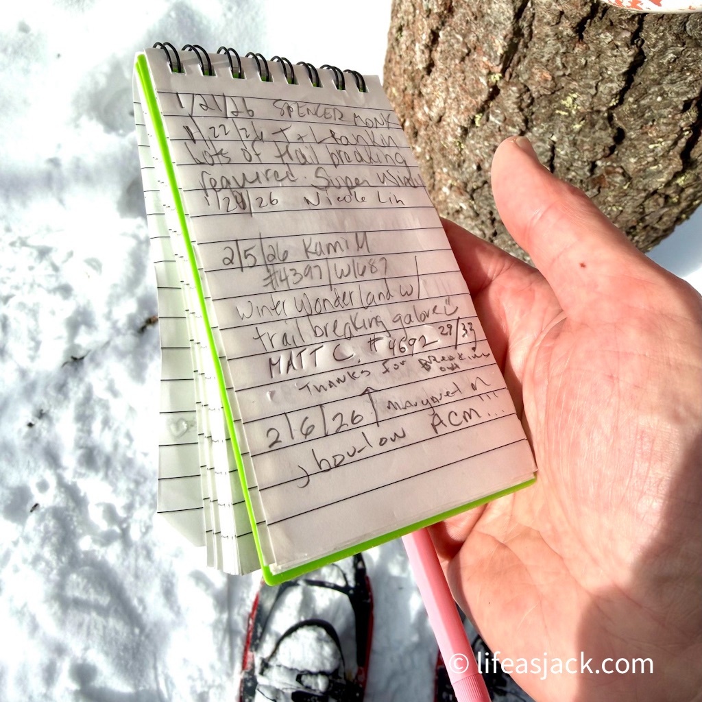 Reaching the trailhead sign, I signed out of the logbook, and took off the snowshoes. I felt 100lbs lighter!